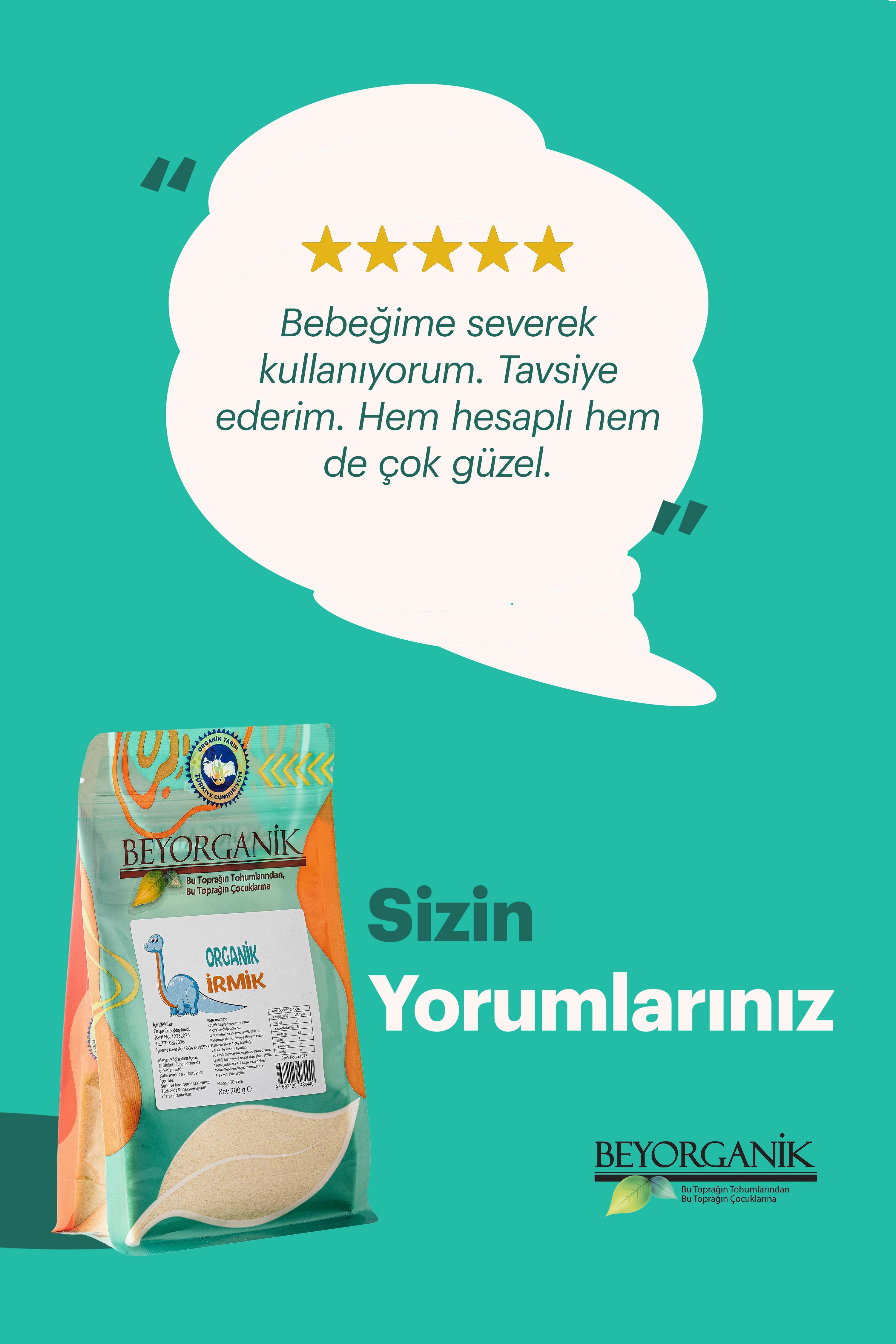 Ek gıdaya geçişte annelerin en güvenilir tercihi! BEYORGANİK Organik Bebek İrmiği, %100 organik buğdaydan elde edilir. Katkı maddesi, yapay aroma ve koruyucu içermez. İnce öğütülmüş yapısı sayesinde bebeklere uygun olarak geliştirilmiştir.