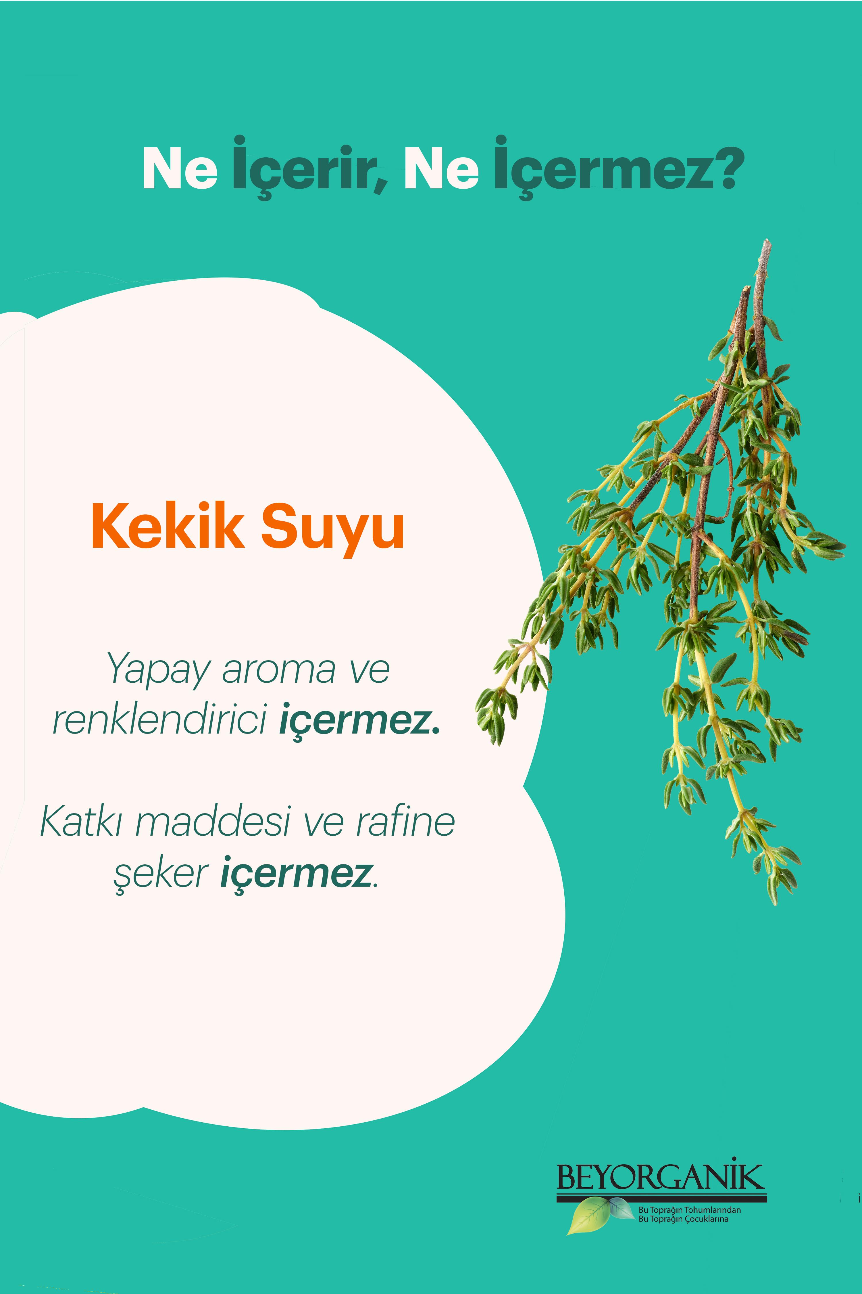 1 su bardağı soğuk içme suyuna 1 tatlı kaşığı BEYORGANİK Organik Kekik Suyu ekleyin. İçine birkaç damla limon suyu ve taze nane yaprakları ilave edin. İyice karıştırarak buzla birlikte servis edin. Ferahlatıcı ve doğal!